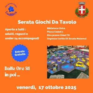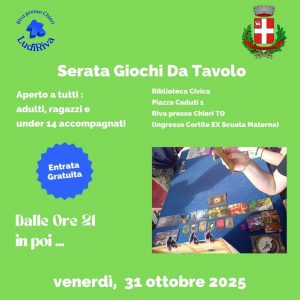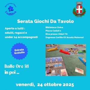 Benvenuto su LudiRiva, l’associazione ludica di Riva presso Chieri dedicata a tutti gli appassionati di giochi da tavolo, di ruolo e di società.