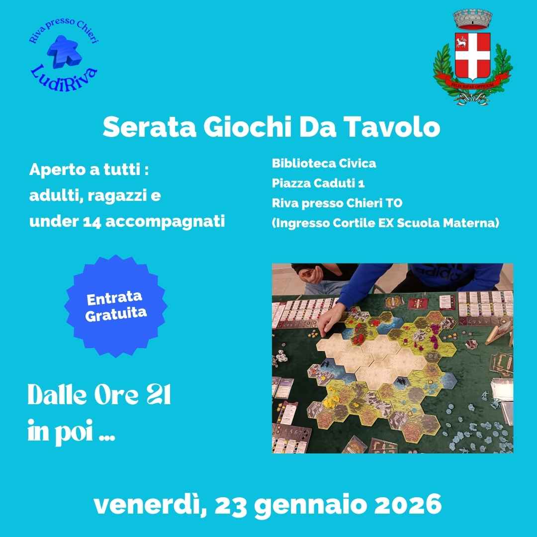Ogni venerdì sera la Biblioteca Civica di Riva presso Chieri si trasforma in un spazio dedicato al gioco e alla socialità!