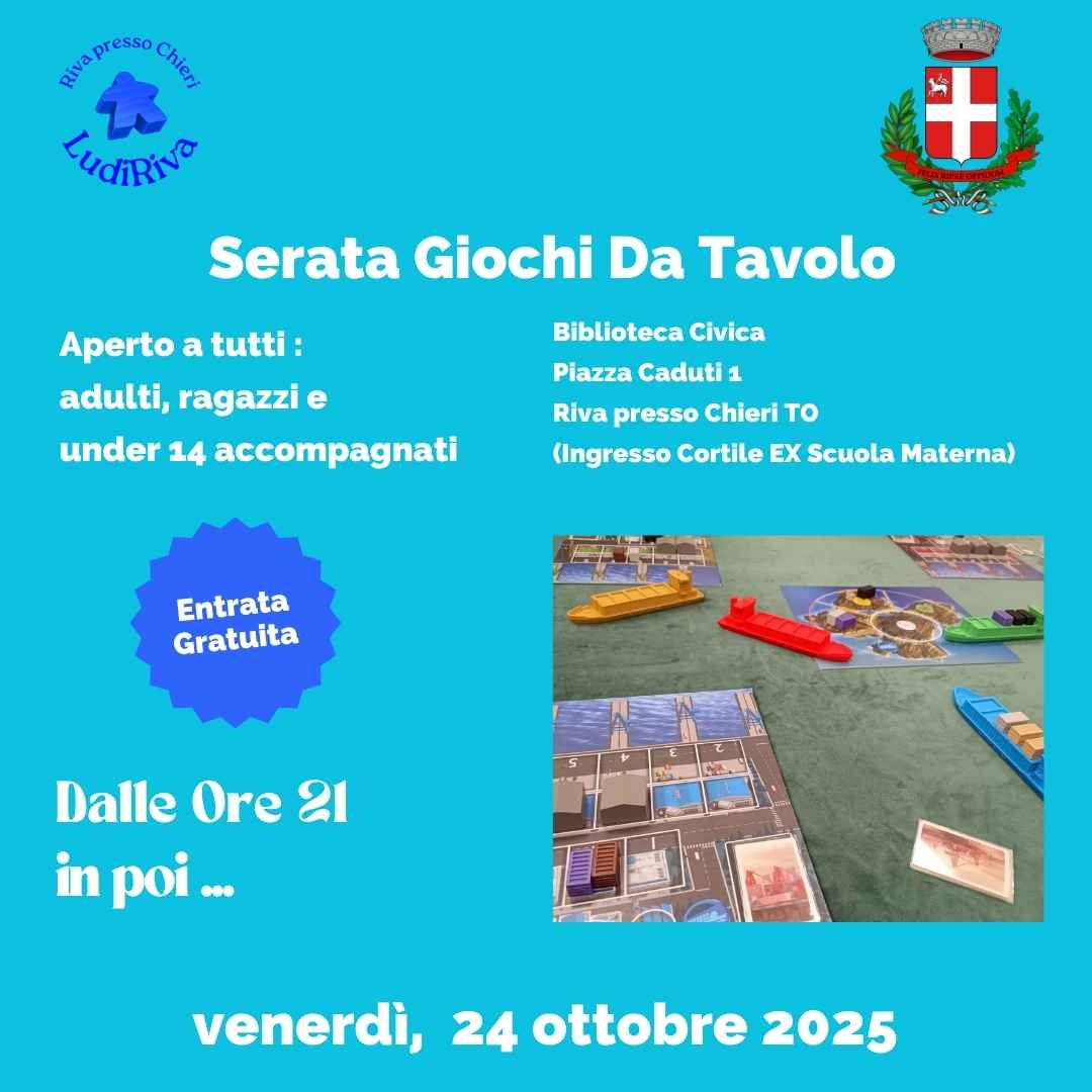 Ogni venerdì sera la Biblioteca Civica di Riva presso Chieri si trasforma in un spazio dedicato al gioco e alla socialità!