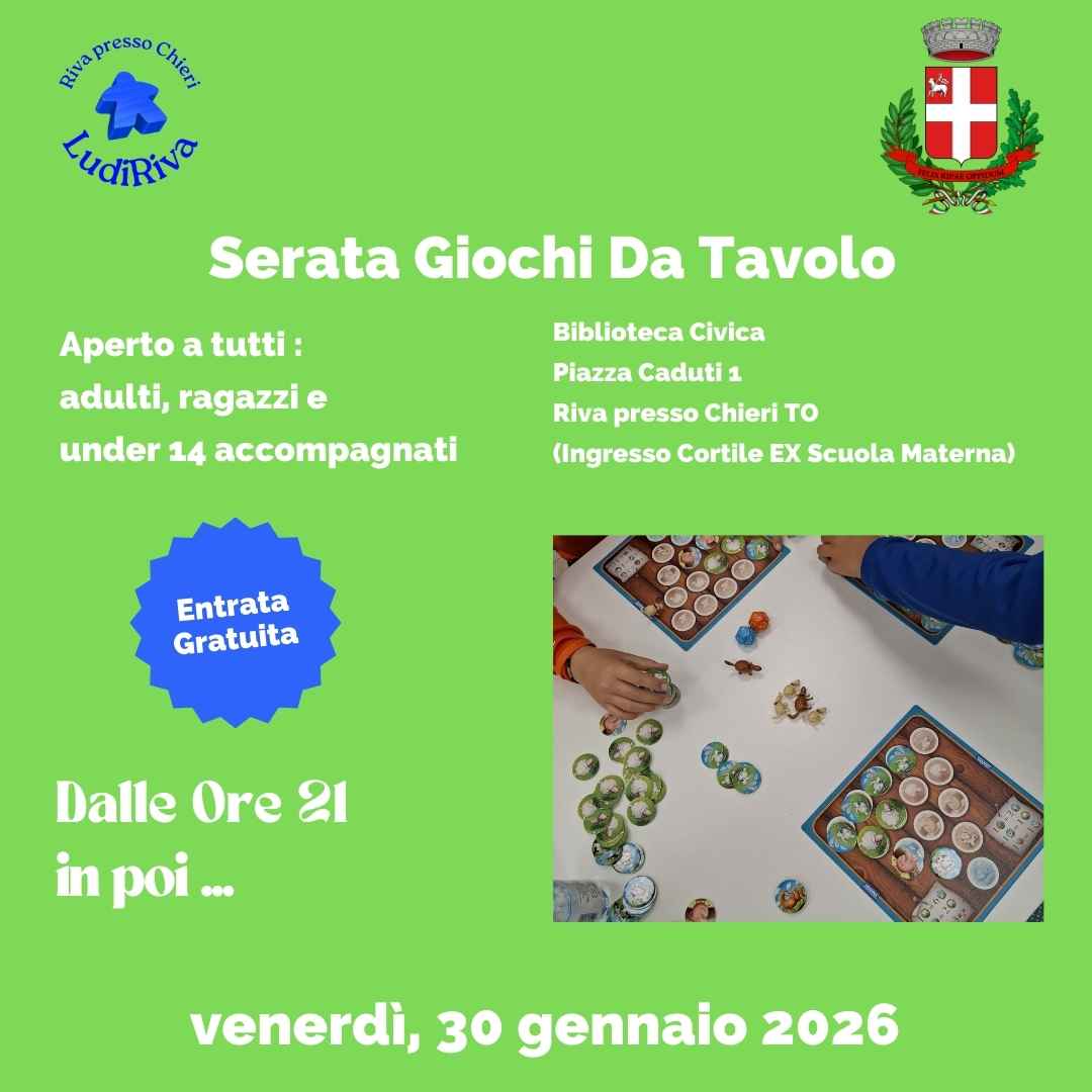 Ogni venerdì sera la Biblioteca Civica di Riva presso Chieri si trasforma in un spazio dedicato al gioco e alla socialità!